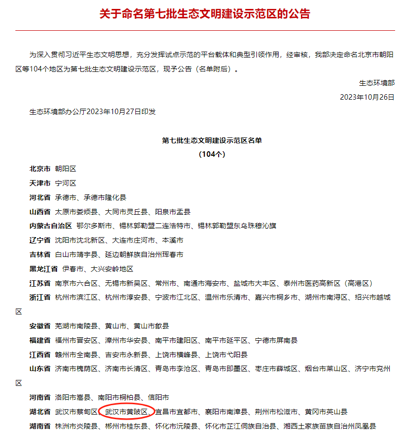 《關于命名第七批生態(tài)文明建設示范區(qū)的公告》