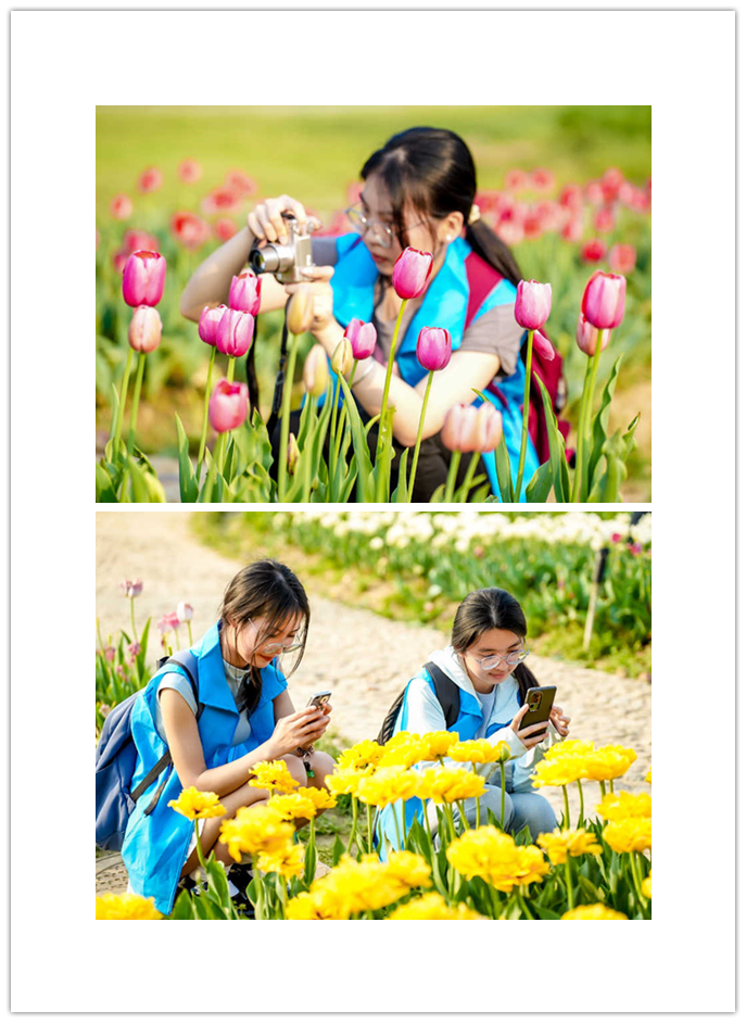 一天的旅程,學(xué)生們迎著春風(fēng)走進(jìn)天然氧吧木蘭天池,在欣賞峽谷風(fēng)光的同時觀看山水沉浸式演藝《木蘭少年志》,并在小天池、大天池等地合影留念。隨后便來到木蘭花鄉(xiāng)景區(qū),此時園中的郁金香已進(jìn)入盛花期,學(xué)生們或蹲下身子或在花道旁依次排開留下青春的倩影。當(dāng)夜幕四合,已換上漢服的學(xué)子們穿梭在木蘭不夜城古色古香的街區(qū),品小吃看表演。