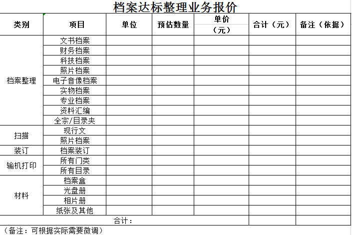 (5)本次檔案整理服務(wù)報(bào)價(jià)(按照清單單項(xiàng)報(bào)價(jià));