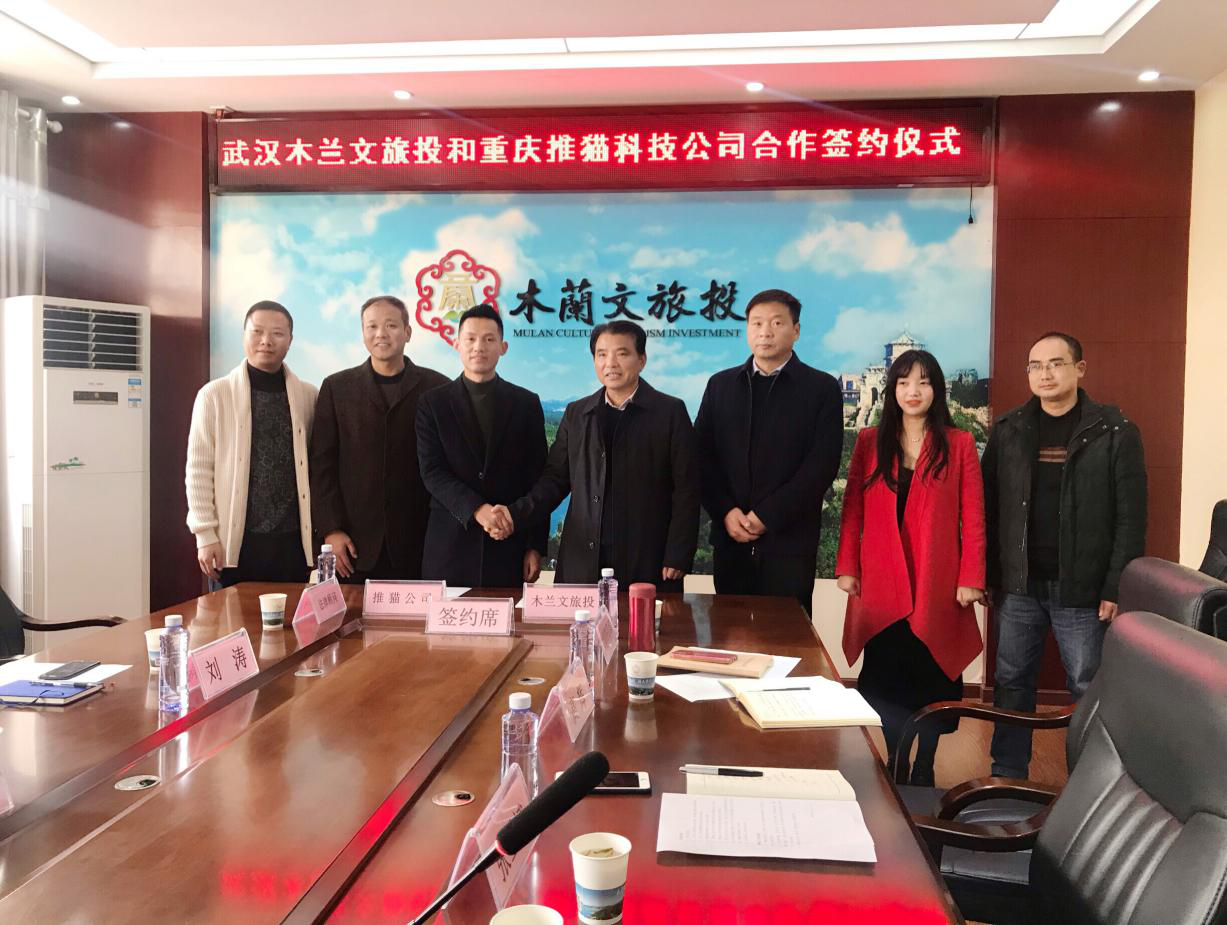 2019年12月26日上午,武漢市木蘭文化旅游發(fā)展投資有限公司和重慶推貓科技有限公司在木蘭文旅投會(huì)議室舉行黃陂區(qū)全域智慧旅游合作開發(fā)項(xiàng)目簽約儀式。