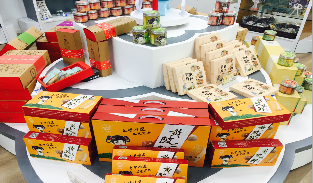 2018年4月28日上午,位于黃陂區(qū)新客運(yùn)中心的“木蘭有禮”品牌旗艦店正式開放營(yíng)業(yè),作為黃陂區(qū)第一家特色形象展示門店,“木蘭有禮”系列產(chǎn)品,共研發(fā)八大主題300款以上產(chǎn)品,目前已落地180款,主打產(chǎn)品為地標(biāo)農(nóng)產(chǎn)品、非遺產(chǎn)品和文創(chuàng)商品。全區(qū)布局計(jì)劃設(shè)置“木蘭有禮”特色商品旗艦店、品牌展示店、景區(qū)合營(yíng)店20余個(gè),聯(lián)合賣貨郎等電商平臺(tái)實(shí)現(xiàn)線上線下同步銷售。